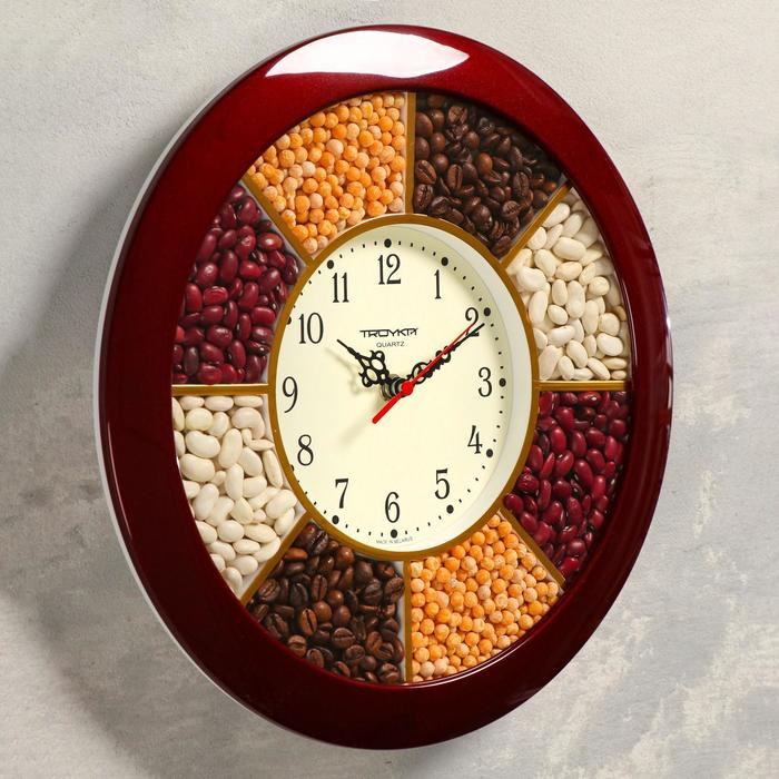 Часы настенные, серия: Кухня, "Специи", d-29 см, бордовый обод