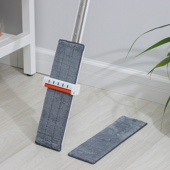 Швабра с отжимом и водосгоном Raccoon, 2 насадки из микрофибры 39×12 см, стальная ручка 130 см