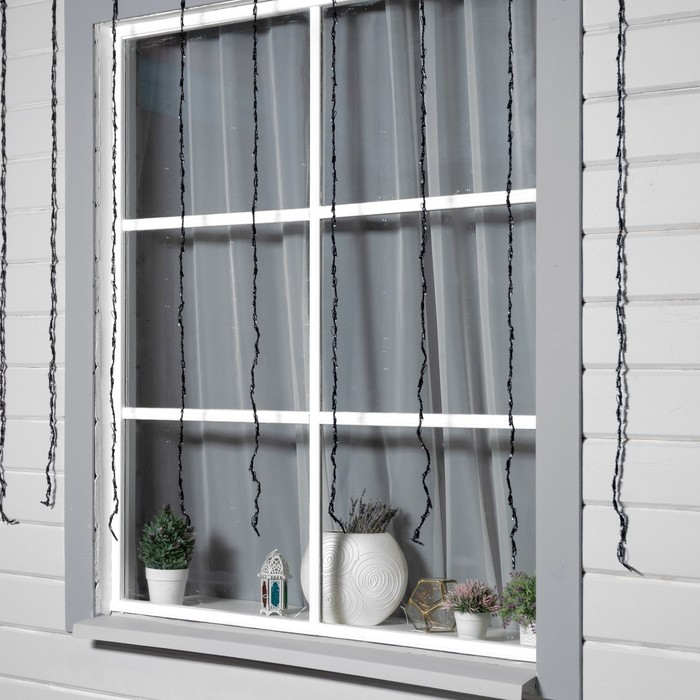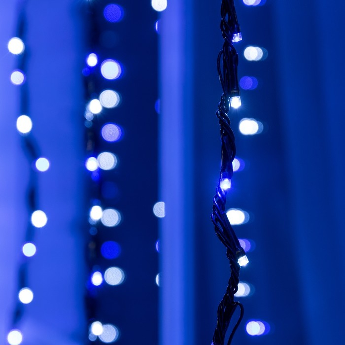 Гирлянда «Водопад» 2 × 1.5 м, IP44, тёмная нить, 400 LED, свечение бело-синее, 8 режимов, 220 В