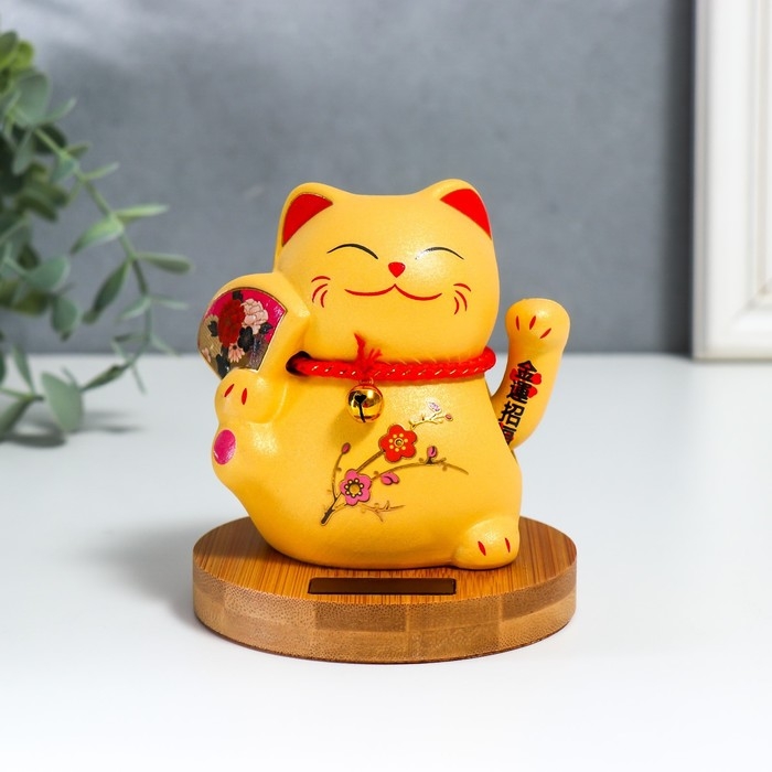 Маятник керамика "Манэки-нэко с веером и сакурой" от солнечных батарей 10х10х12 см