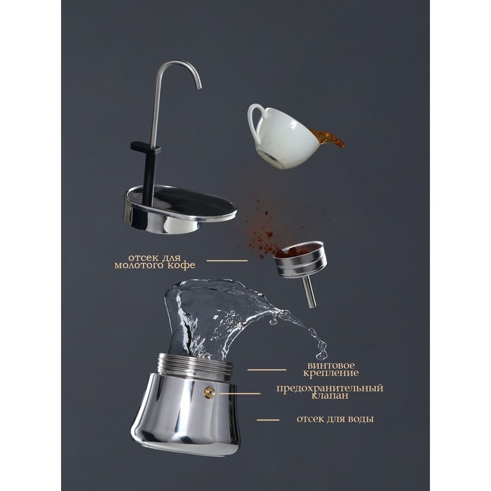 Кофеварка гейзерная Доляна Alum black, на 1 чашку, 50 мл, цвет чёрный
