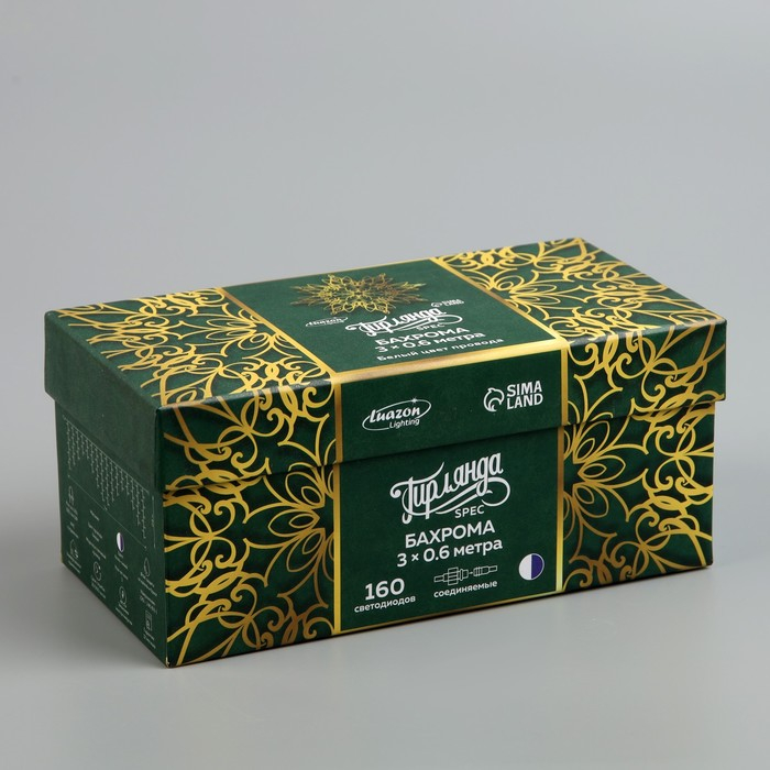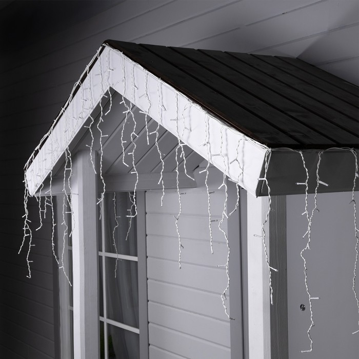 Гирлянда «Бахрома» 3 × 0.6 м, IP44, УМС, белая нить, 160 LED, свечение бело-синее, мигание, 220 В