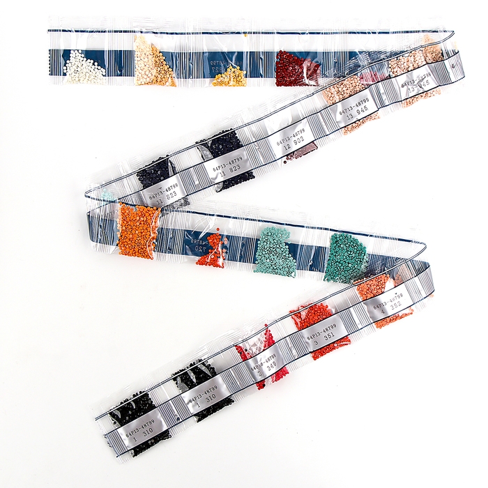 Разложите кристаллики с помощью карандаша по указанной схеме, заполнив полотно. Тканевая основа с точечным клеевым покрытием будет надёжно удерживать стразы. На картине уже обозначены необходимые оттенки, а цветовая таблица расположена рядом с рабочей областью холста.