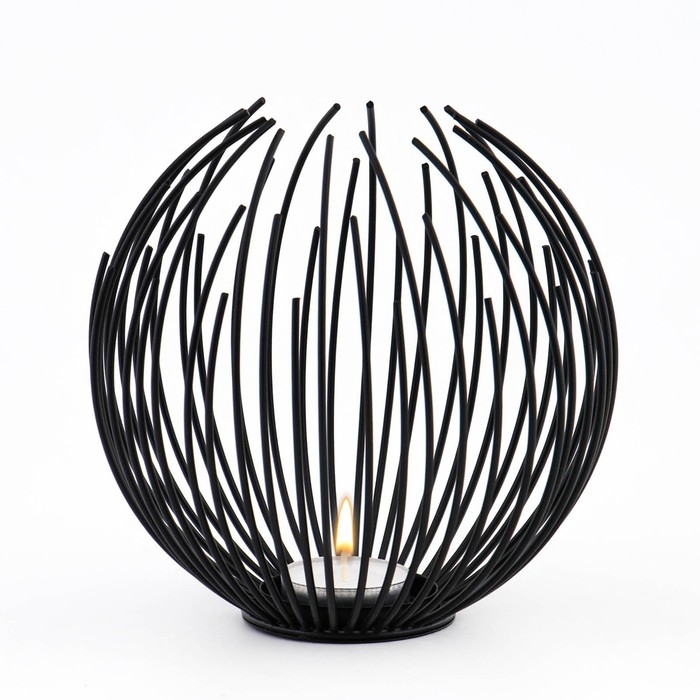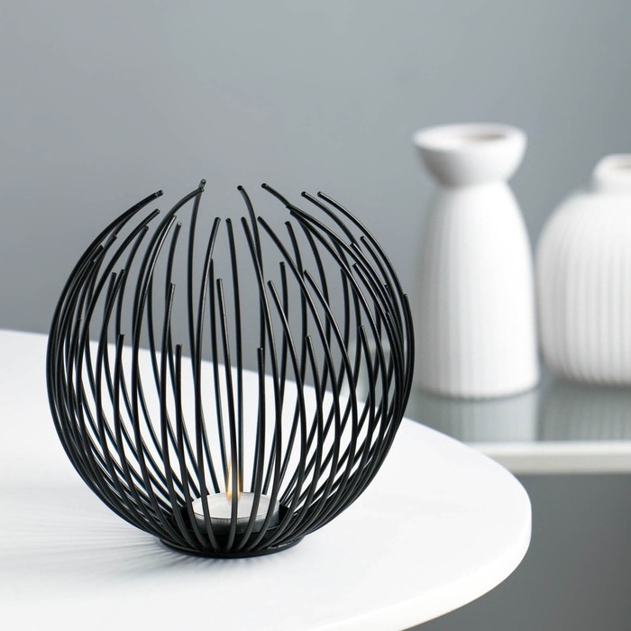Подсвечник металлический настольный "Шар", 15.5 х 15 см, черный
