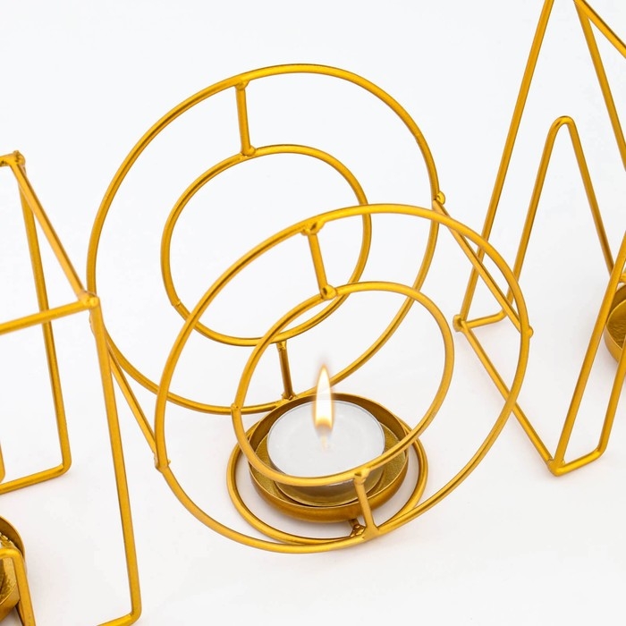 Подсвечник металл на 2 свечи "Шестиугольная клетка" d-4,5 см золот.-чёрный 11,5х11,5х15,5 см 93307