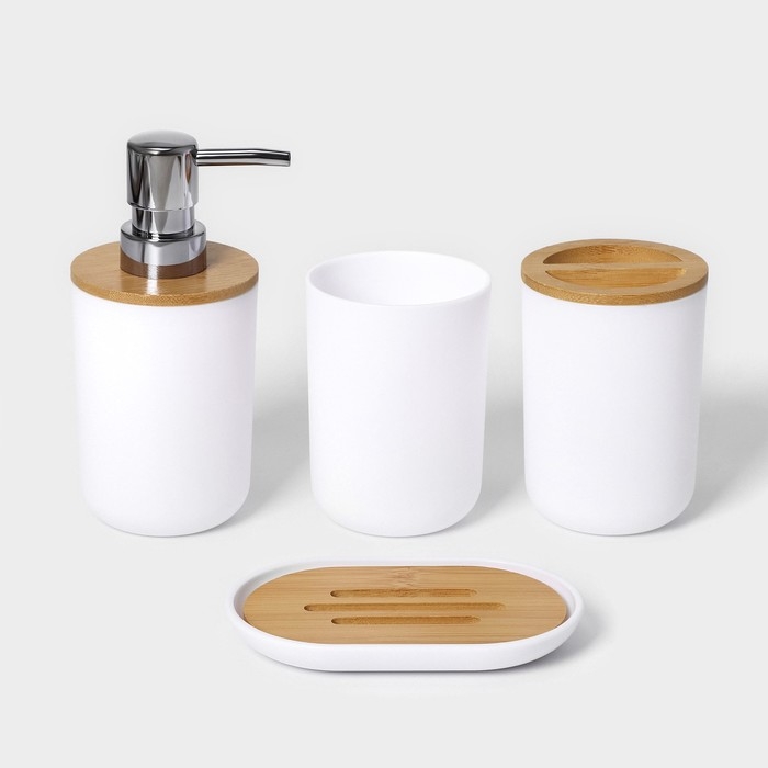 Набор аксессуаров для ванной комнаты SAVANNA Monro, 4 предмета (мыльница, дозатор для мыла 450 мл, стакан, баночка), цвет белый