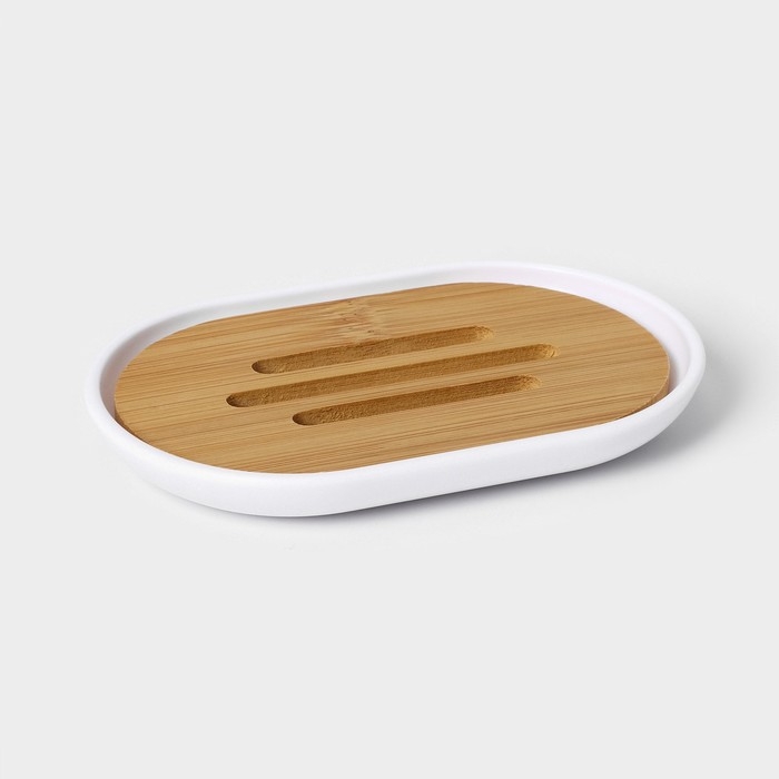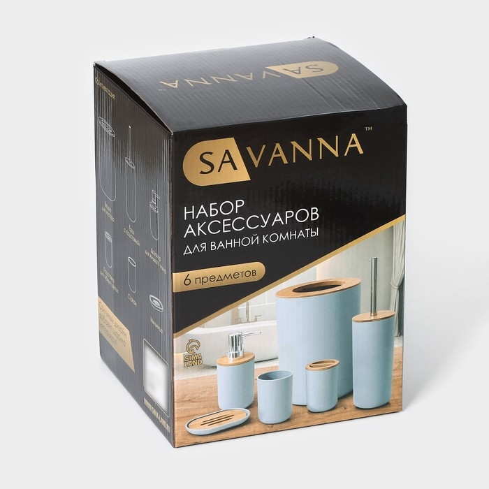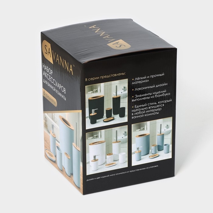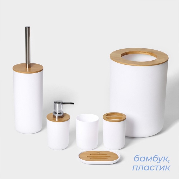 Набор аксессуаров для ванной комнаты SAVANNA «Вуди», 6 предметов (мыльница, дозатор, 2 стакана, ёршик, ведро), цвет белый