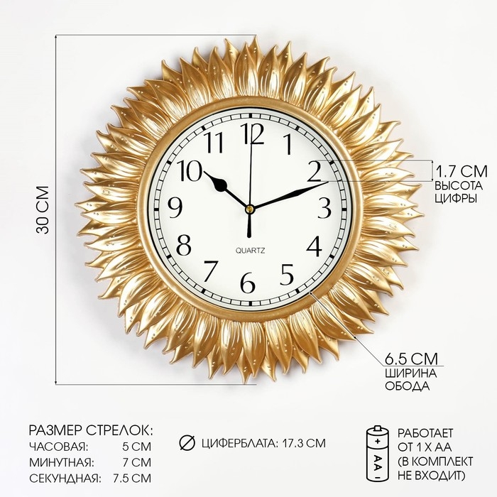 Часы настенные, серия: Интерьер, дискретный ход, d-30 см, АА