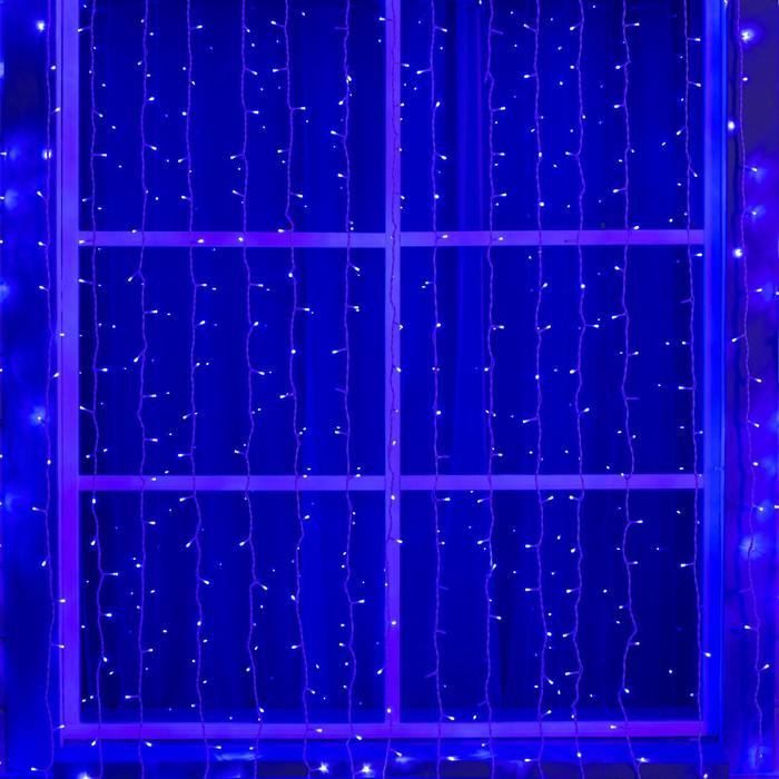 Гирлянда «Занавес» 2 × 6 м, IP44, УМС, белая нить, 1440 LED, свечение синее, 220 В