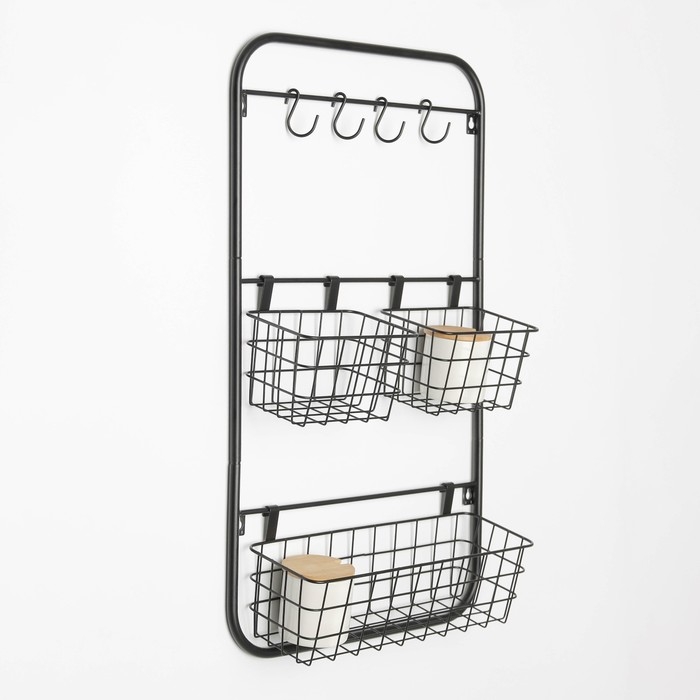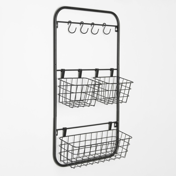 Система хранения универсальная, 3 корзины, 4 крючка, цвет чёрный