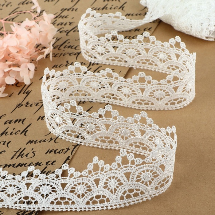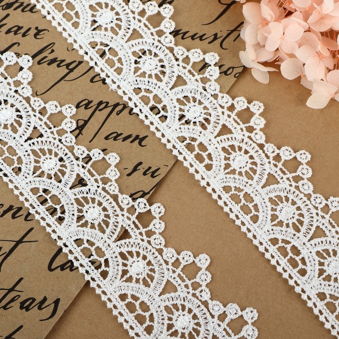 Кружево гипюровое, 45 мм × 9 ± 0,5 м, цвет белый