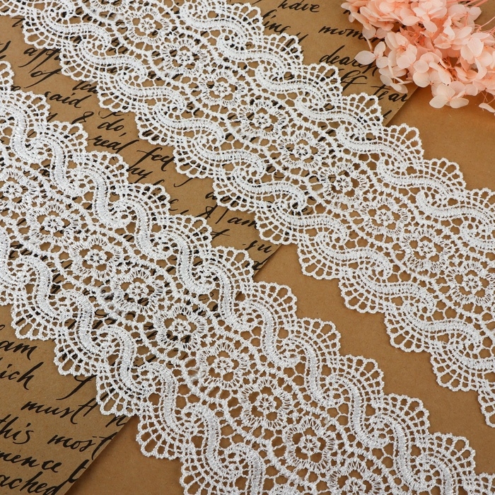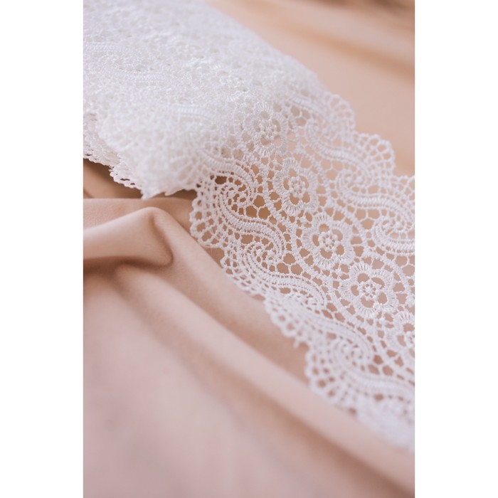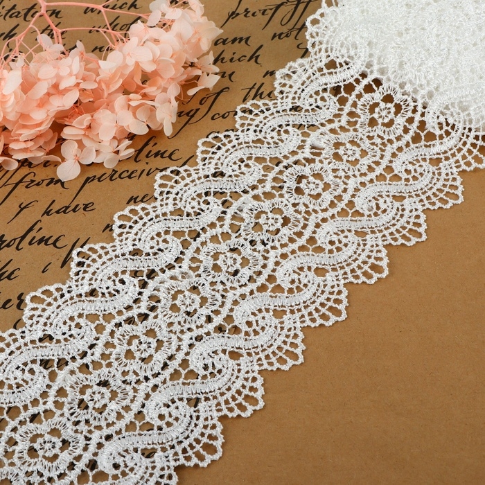 Кружево гипюровое, 105 мм × 6,8 ± 0,5 м, цвет белый