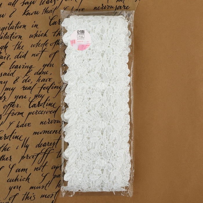 Кружево гипюровое, 85 мм × 6,8 ± 0,5 м, цвет белый