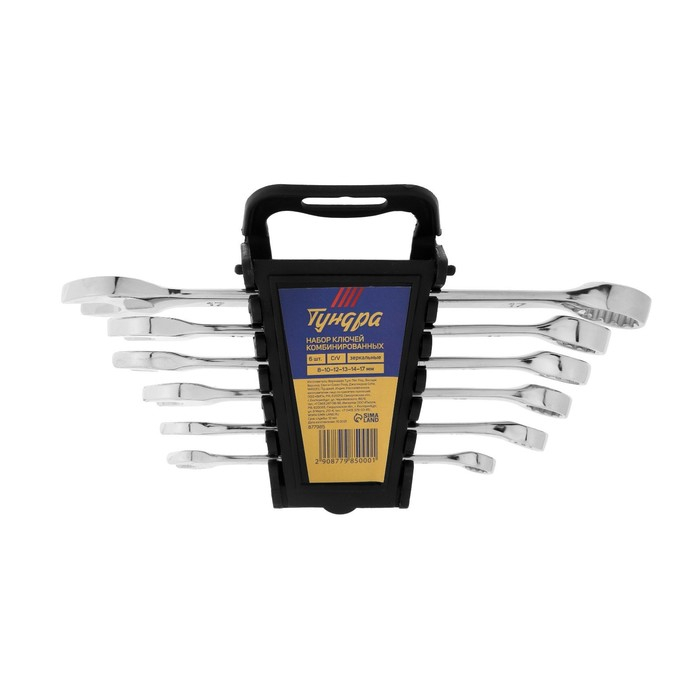Набор ключей комбинированных в холдере ТУНДРА, CrV, зеркальные, 8 - 17 мм, 6 шт.