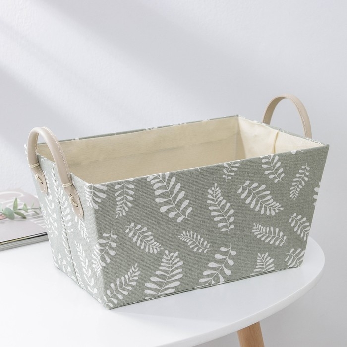 Корзина для хранения с ручками Доляна «Листья», 31,5×21×21 см, цвет серо-зелёный