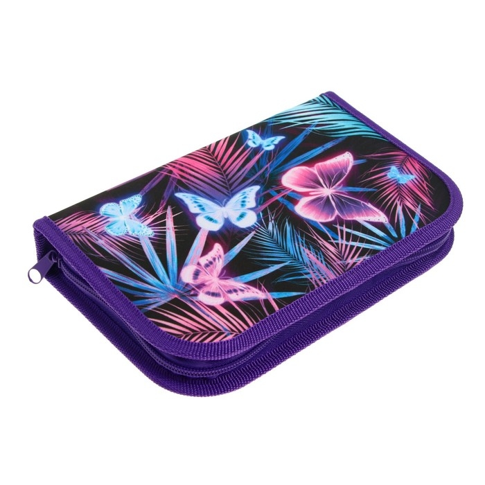 Пенал 1 секция, 130 х 210 х 40 мм, 2 откидные планки, тканевый, Calligrata TOP, Content "Бабочки"