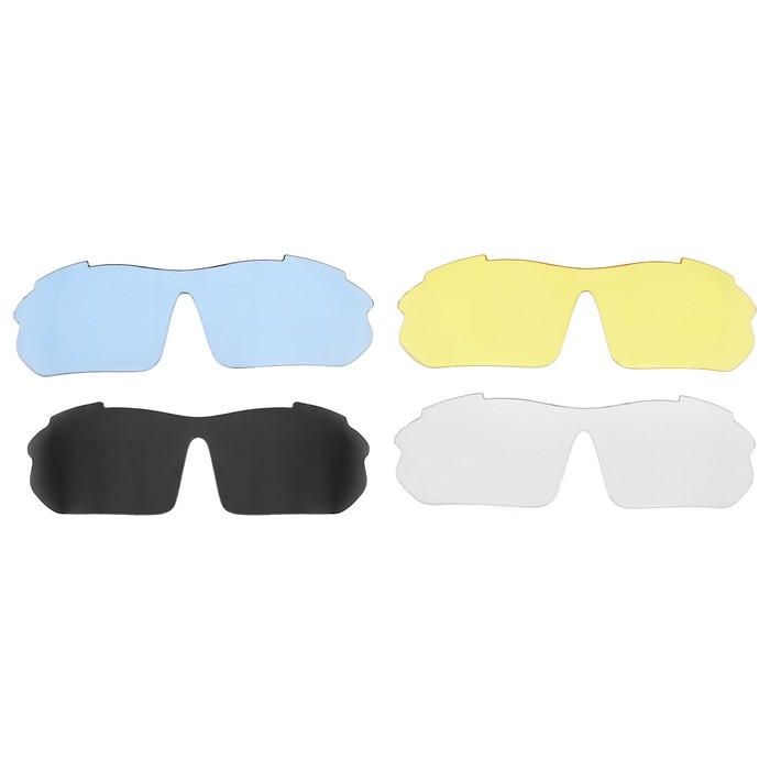 Велосипедные солнцезащитные очки оснащены пятью сменными небьющимися линзами для обеспечения оптической чёткости днём или ночью. В комплект входит чехол из микроволокна и футляр на молнии с внешними отделениями для хранения сменных линз.