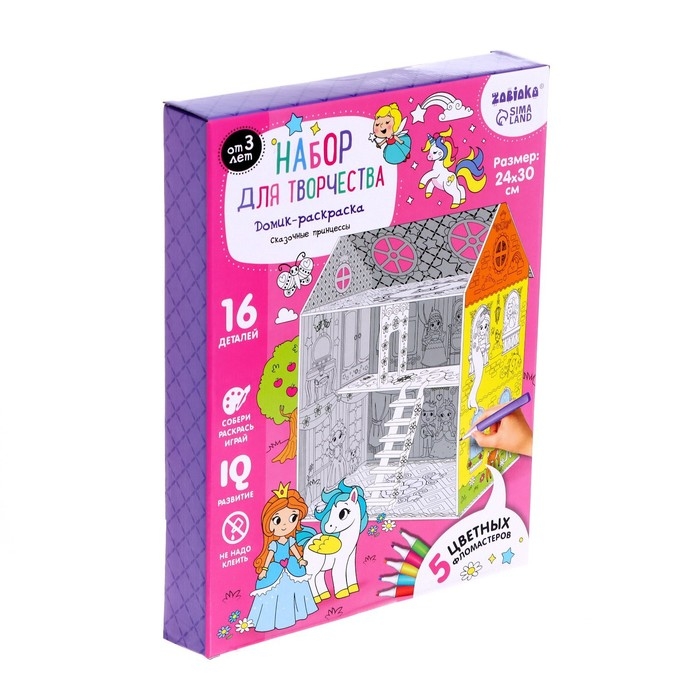 Домик-раскраска «Сказочные принцессы» приведёт малышку в восторг! Игрушка способствует формированию творческих способностей, мелкой моторики, усидчивости и внимательности.