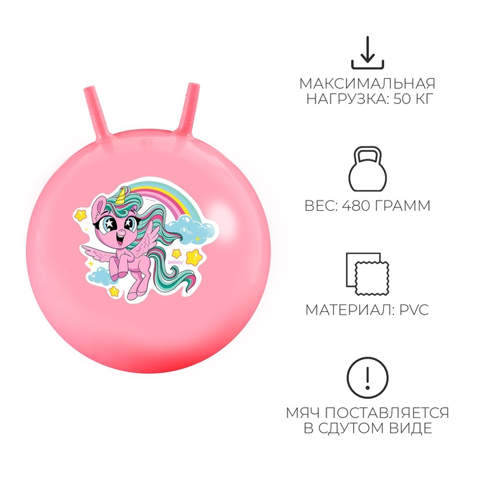Мяч-прыгун с рожками ZABIAKA «Единорожка», d=55 см, 480 г, цвет розовый