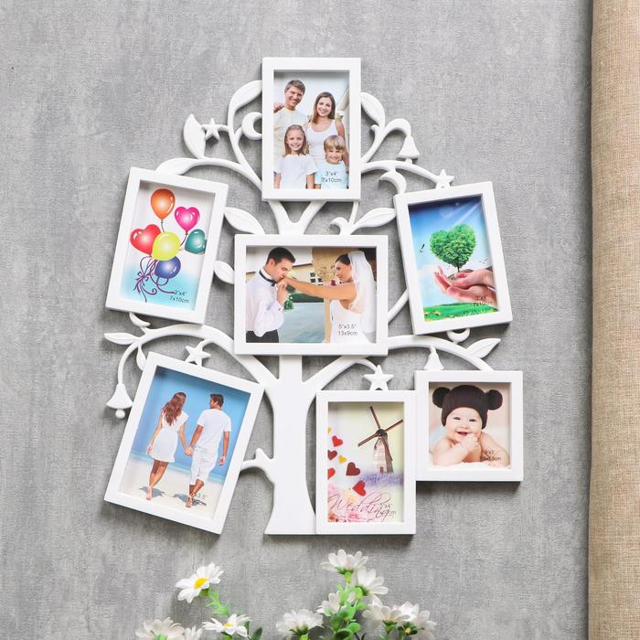 Фоторамка на 7 фото 7х7 см, 7х10 см, 13х9 см "Дерево желаний" белая 36х31 см