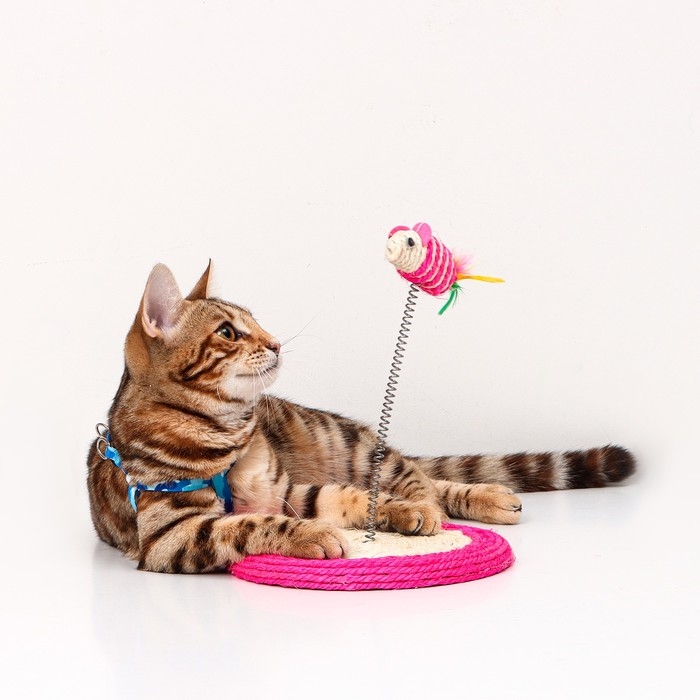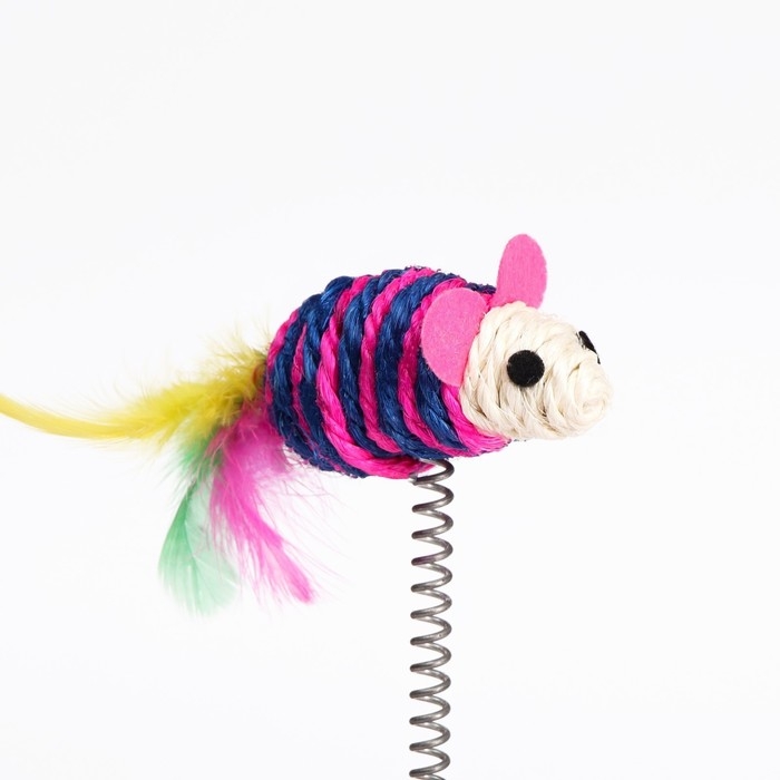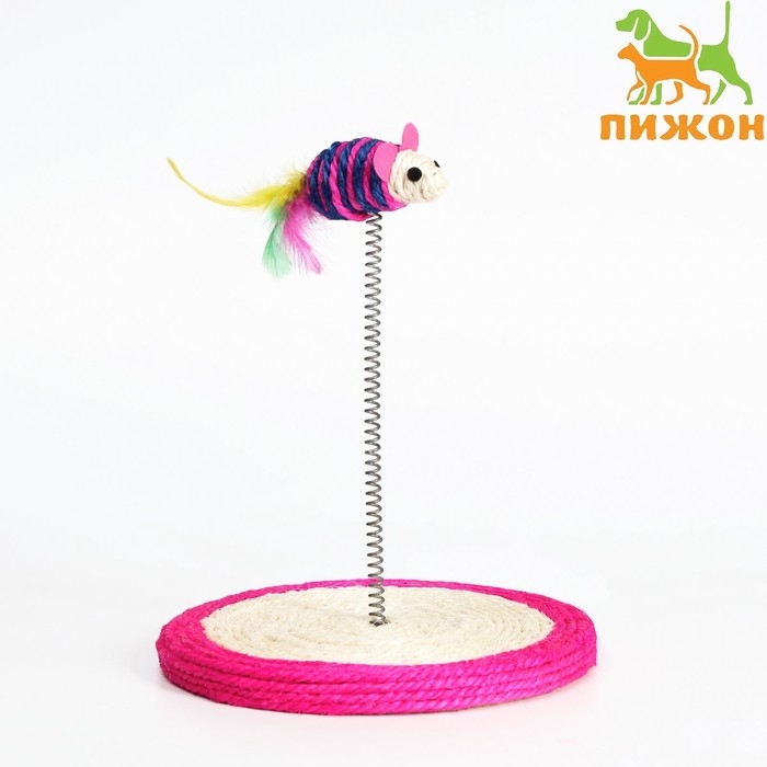 Дразнилка для кошек "Сизалевая мышь на сизалевой подставке", 19 х 23 см, микс цветов