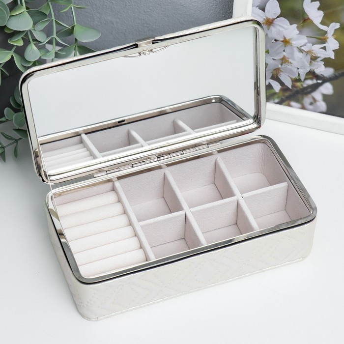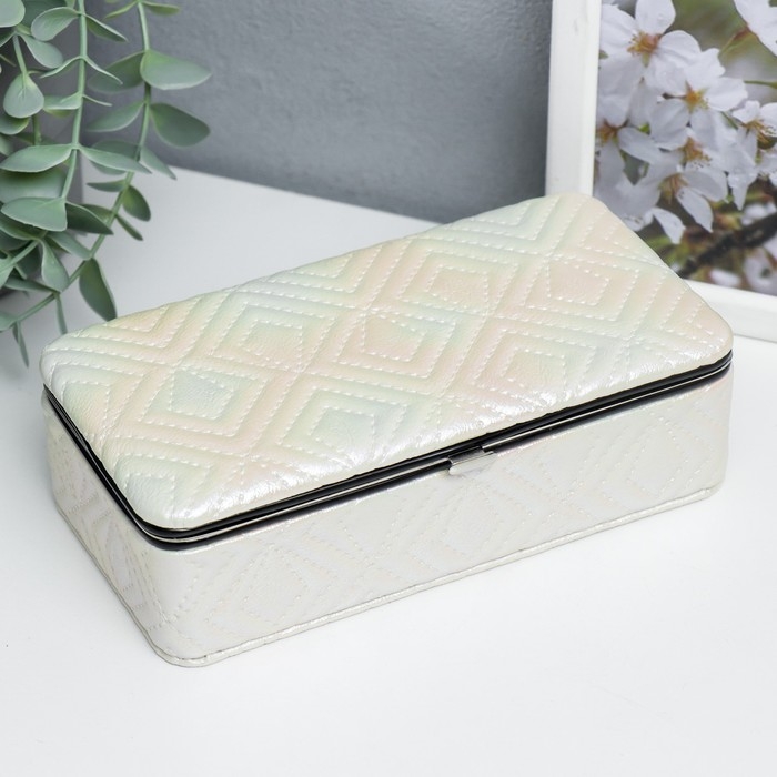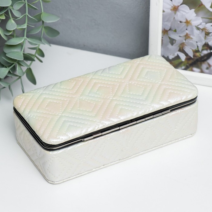 Шкатулка кожзам для украшений "Узор из ромбов. Белый перламутр" 6х9,8х18,5 см