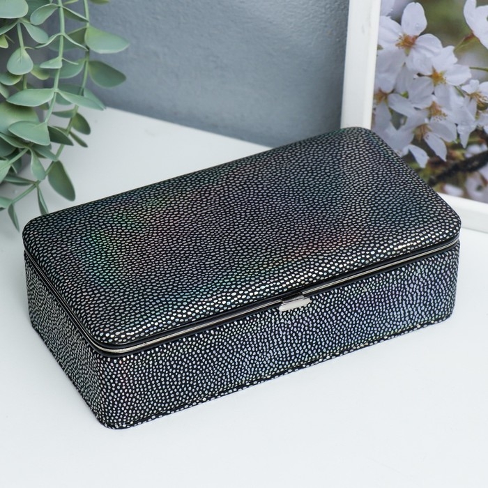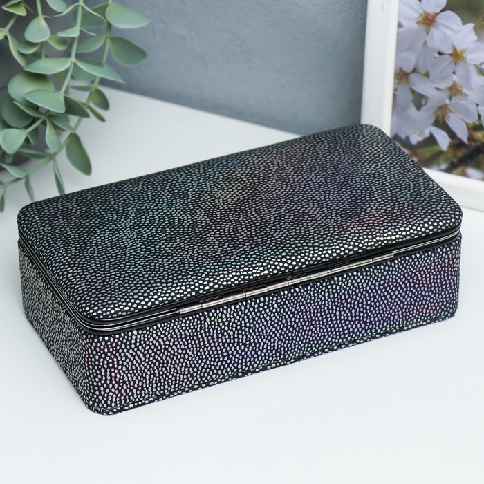 Шкатулка кожзам для украшений "Маленькие пятнышки. Синяя голография" 6х9,8х18,5 см