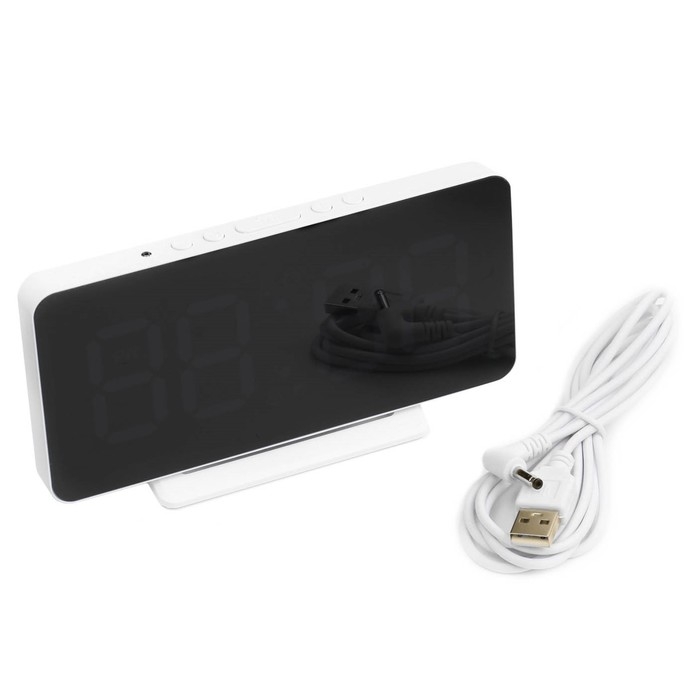 Часы электронные настольные, будильник с проекцией на потолок, календарем, USB, белая индикация 9742
