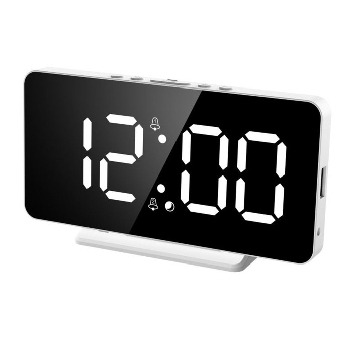 Часы электронные настольные, с будильником, вибрацией, от USB, 2 батарейки АА