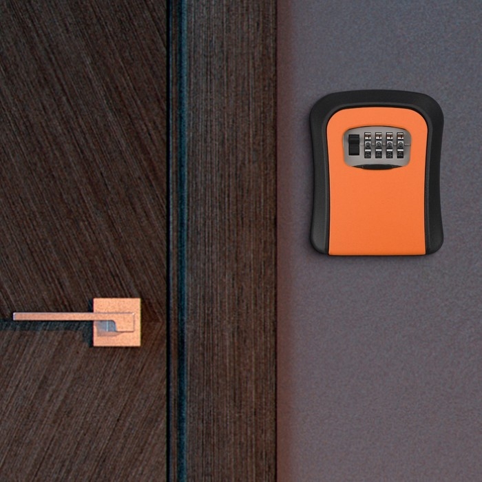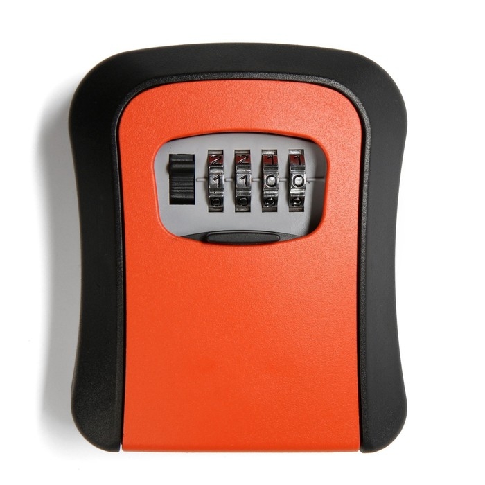 Сейф-ключница кодовая ТУНДРА, металл, пластик, цвет оранжевый,