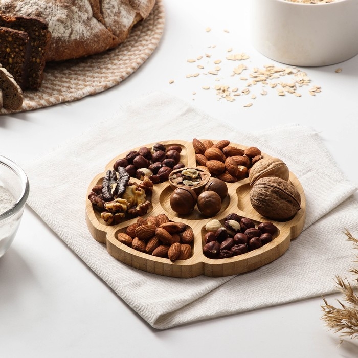 Никак не можете отучить себя от вредных перекусов? Изящная менажница из натурального дерева не даст вам пройти мимо орешков и сухофруктов. Изделие станет стильным и уютным элементом вашей кухни и незаменимым аксессуаром для сервировки стола.