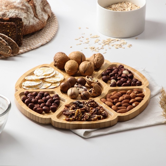 Никак не можете отучить себя от вредных перекусов? Изящная менажница из натурального дерева не даст вам пройти мимо орешков и сухофруктов. Изделие станет стильным и уютным элементом вашей кухни и незаменимым аксессуаром для сервировки стола.