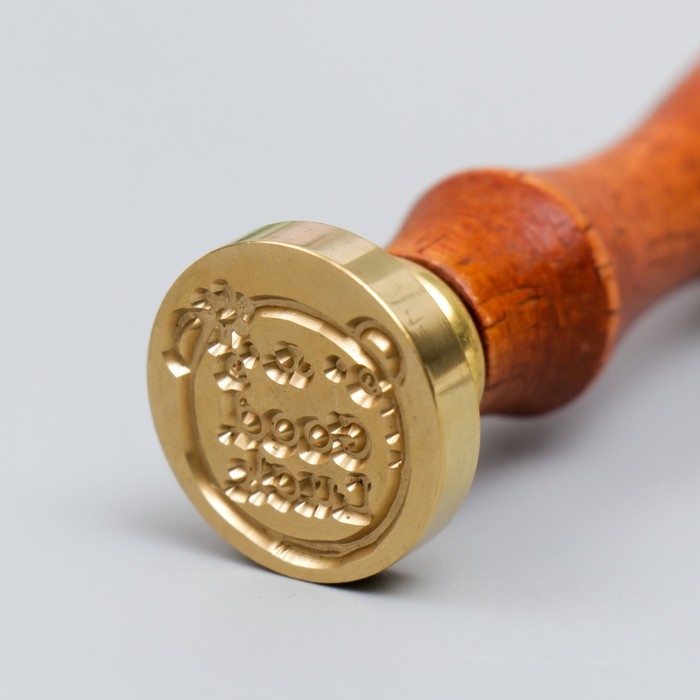 Печать для сургуча с деревянной ручкой "Медвежонок - Удачи" 9х2,5х2,5 см