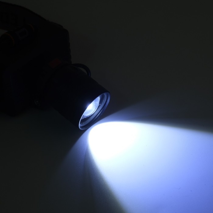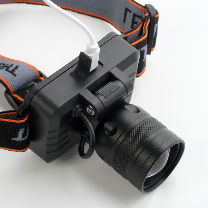 Фонарь налобный аккумуляторный, Р50, 1200 мАч, 3 режима, zoom, индикатор заряда, USB
