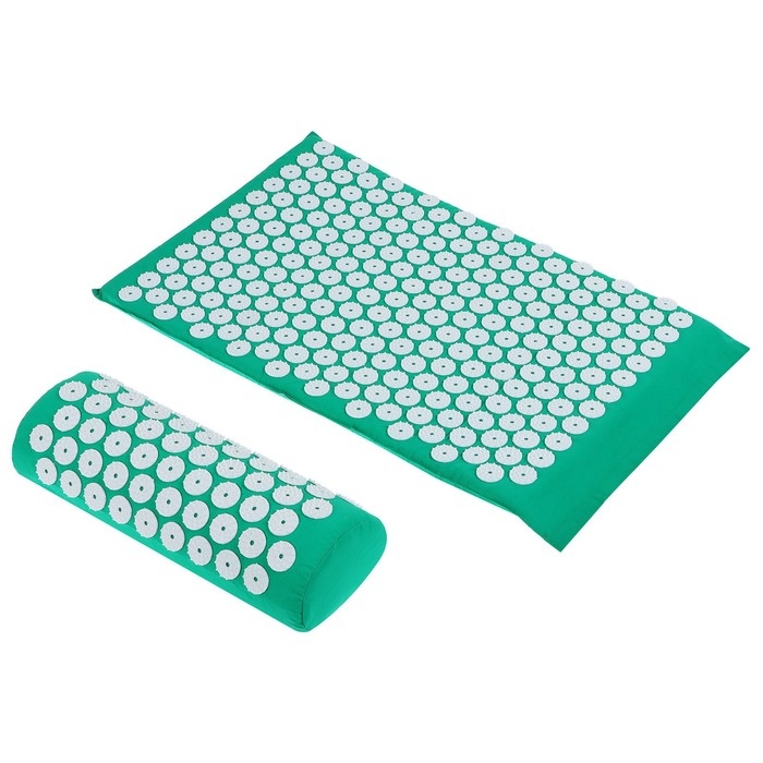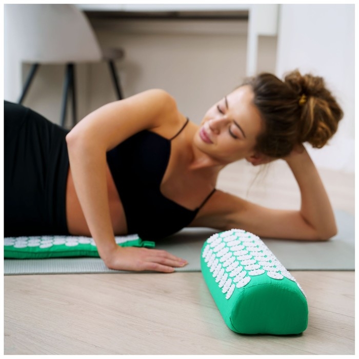 Набор предназначен для йоги и занятий фитнесом. Благодаря иголочкам, которые расположены по кругу пластиковых частей аппликаторов, можно проводить расслабляющий массаж. Валик под шею или поясницу поможет расслабить мышцы.