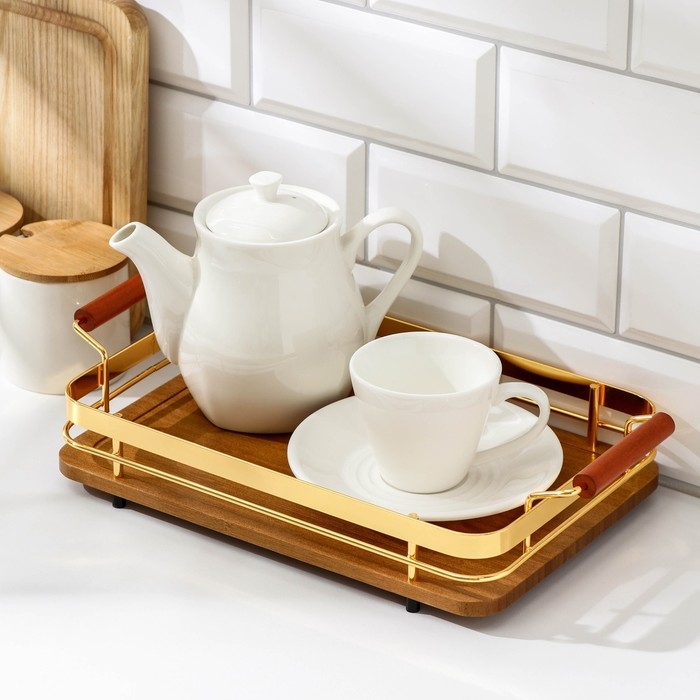 Поднос для подачи с ручками, 40×25×1,8 см, массив берёзы, пропитано маслом