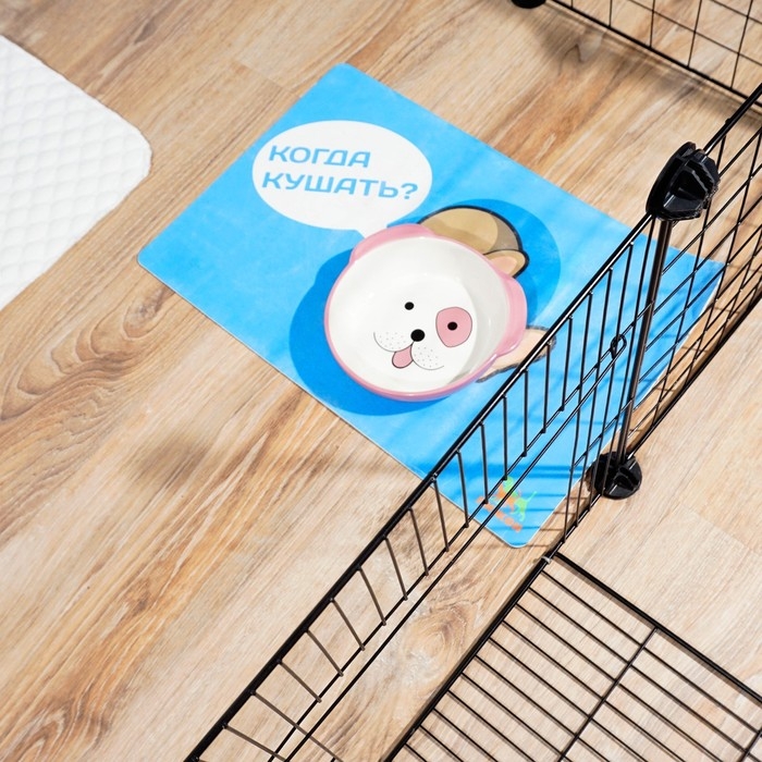 Полезные советы: позаботьтесь о том, чтобы собаке было комфортно внутри ограждения - установите удобную миску на прутья и постелите мягкий коврик.