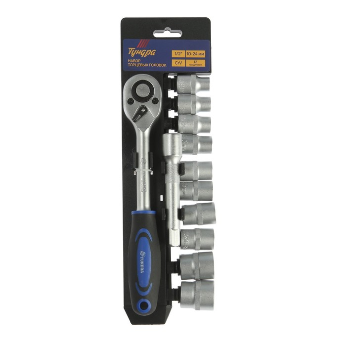 Набор торцевых головок ТУНДРА, трещотка, CrV, 1/2", 10 - 24 мм, 12 предметов