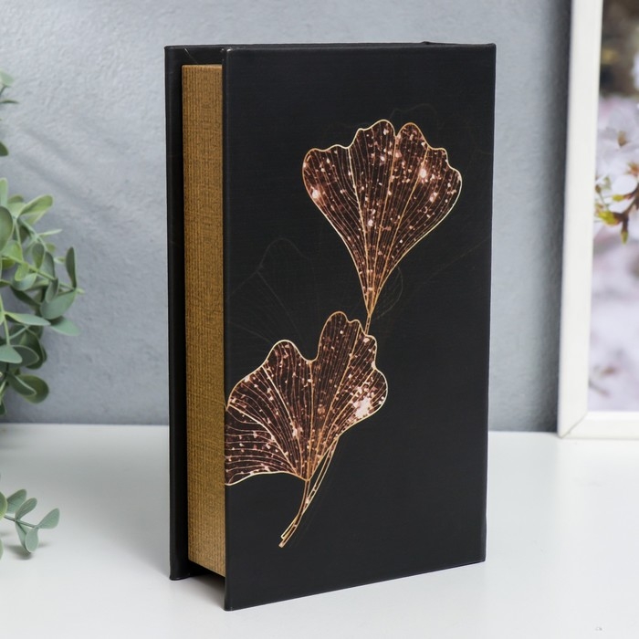 Сейф-книга дерево кожзам "Золотые лепестки на чёрном" 21х13х5 см