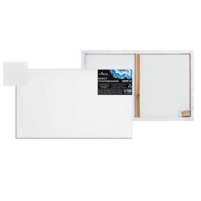 Холст на подрамнике, хлопок 100%, 1,6 х 60 х 90 см, акриловый грунт, мелкозернистый, 280 г/м²