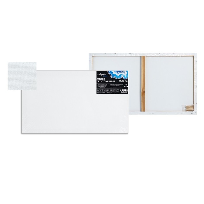 Холст на подрамнике, хлопок 100%, 1.6 х 50 х 80 см, акриловый грунт, мелкозернистый, 280 г/м²