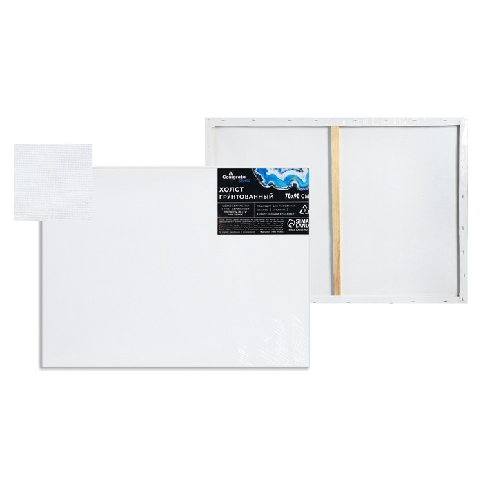 Холст на подрамнике, хлопок 100%, 1,6 х 70 х 90 см, акриловый грунт, мелкозернистый, 280 г/м²
