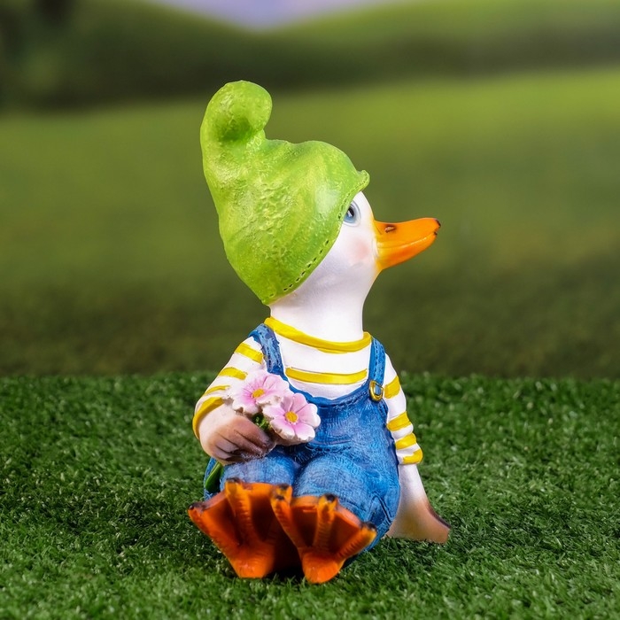 Садовая фигура "Утенок с цветами" 10x5,5x16см