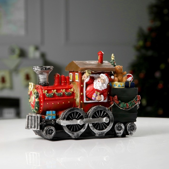 Светодиодная фигура «Паровоз с Дедом Морозом» 26.5 × 19.5 × 12.5 см, полистоун, батарейки ААх3 (не в комплекте), USB, свечение мульти