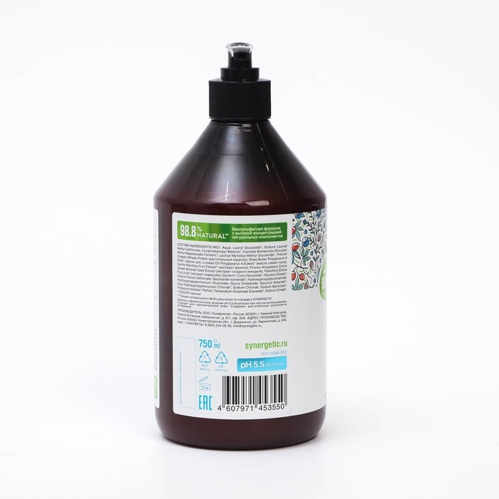 Натуральный бессульфатный шампунь SYNERGETIC Объём и укрепление волос , 0,75 мл