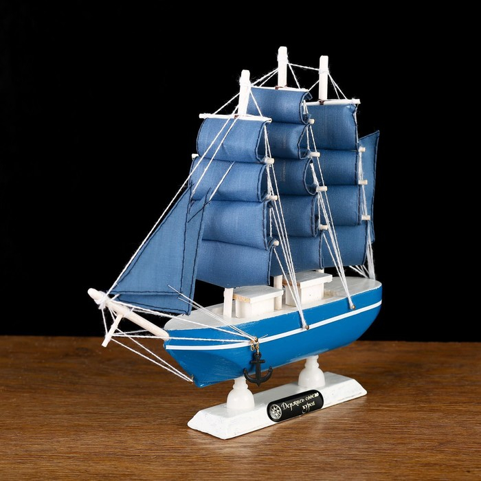 Корабль сувенирный малый «Аскольд», борта голубые с полосой, паруса голубые, 23,5×4,5×23 см