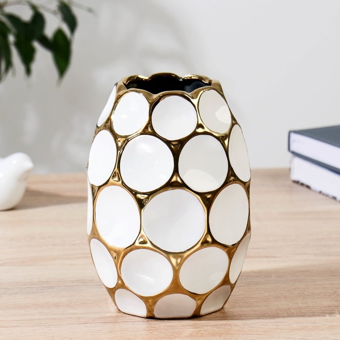 Ваза керамика настольная "Мелани" h-18 см d-7 см, бело-золотой