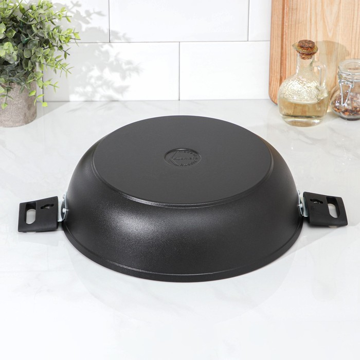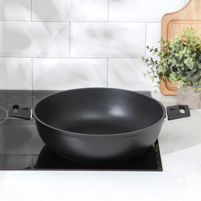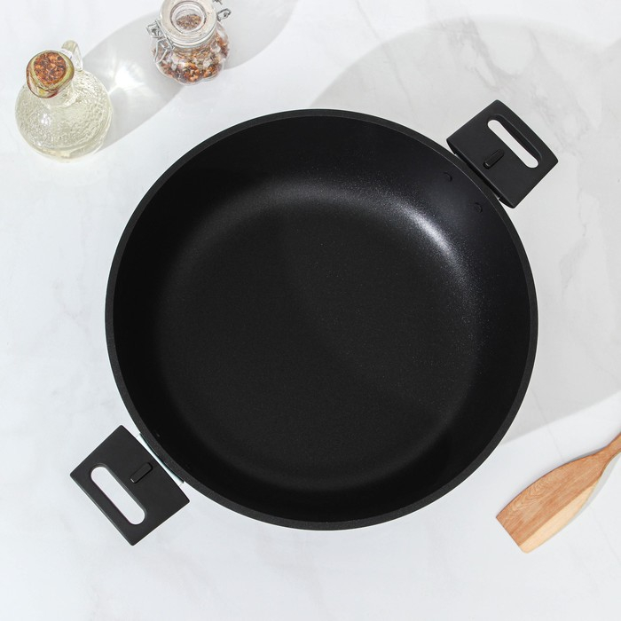 Сковорода KUKMARA «Традиция», d=30 см, h=8.5 см, съёмные ручки, антипригарное покрытие, алюминий, чёрная