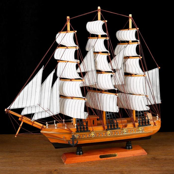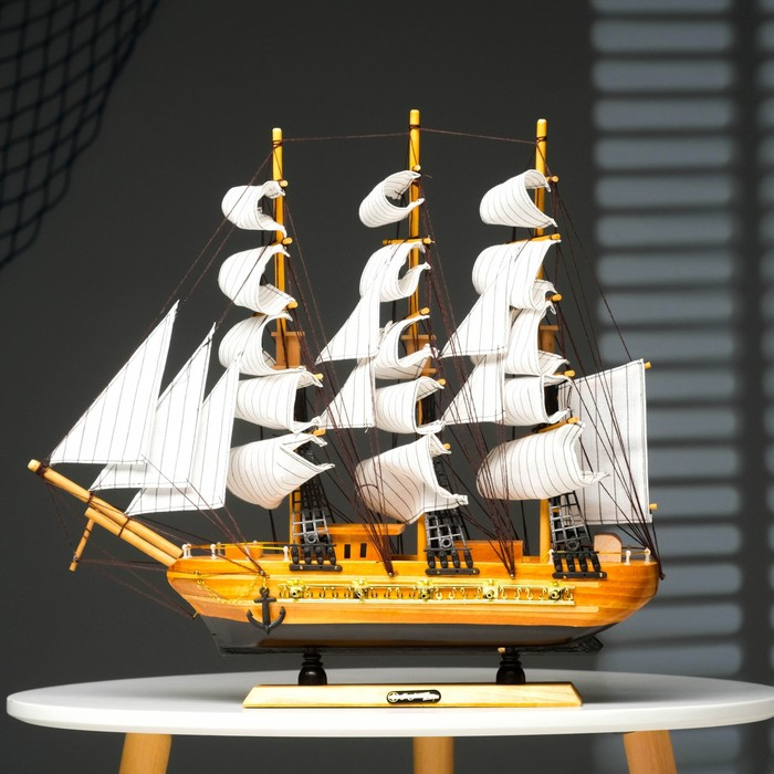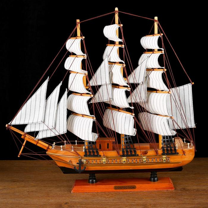 Корабль сувенирный средний «Астрильд», борта светлое дерево, паруса бежевые, 48,5х44х8 см