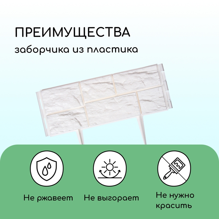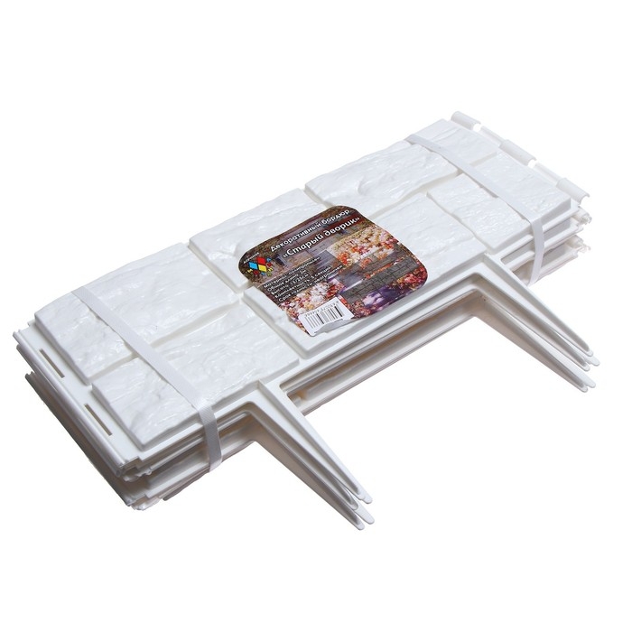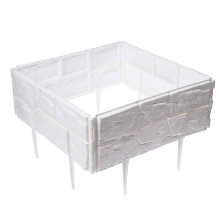 Ограждение декоративное, 24 × 177,5 см, 5 секций, пластик, белое, «Камень»